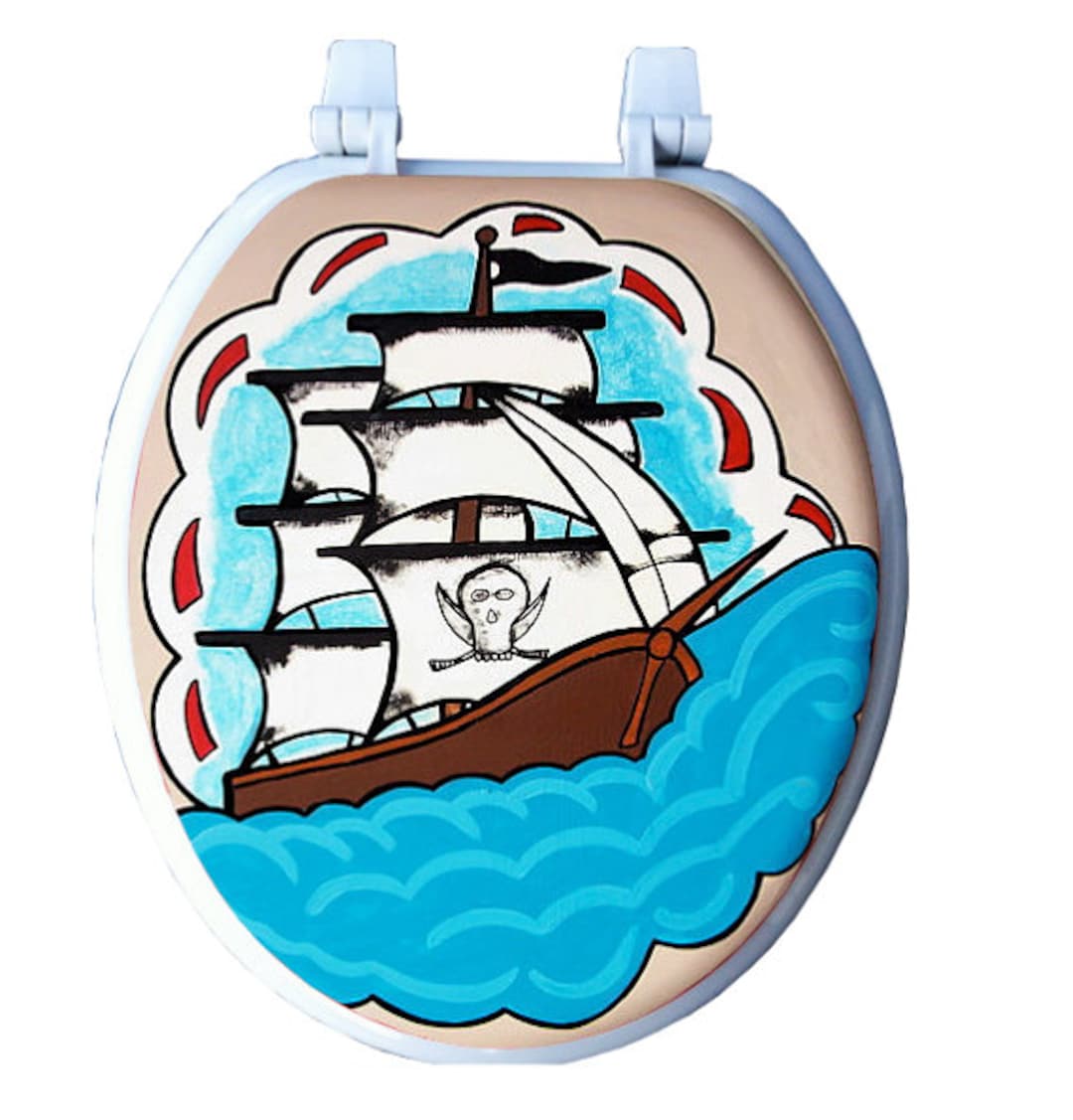 Pirate Ship Tattoo Hand Painted Toilet Seat Bathroom Remodel Etsy Uk